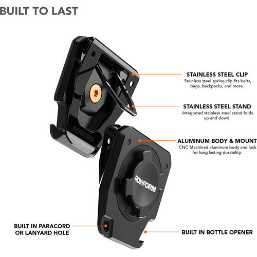 Whether you are clipping it on your belt, bag, or purse, using it as a stand to attend a Zoom meeting, keeping a firmer hold while texting with the built-in phone grip, or even finishing out your day opening a cold frosty one, with its built-in bottle opener. No matter the time of day or night, the new Rokform Belt Clip Sport Utility (SUB-C) will be there to make your life a little easier and more convenient, every single day.